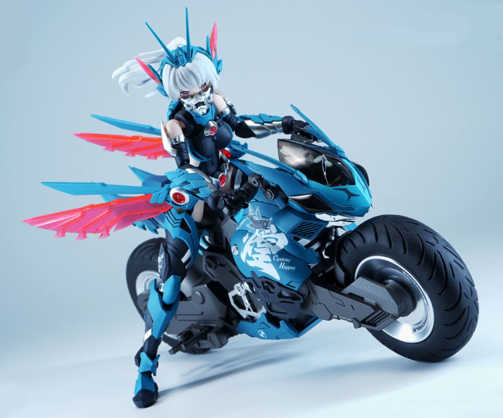 NUKE MATRIX製美少女メカプラモデルシリーズから新製品、サイクロンホッパーがついに登場します!本体×1、本体(武装状態)×1、バイク×1、頭部用パーツ×1、ハンドパーツ(武装状態用)×6セット、ハンドパーツ×7セット、バイク用装甲パーツ×2、ジャンプ推進機×2、表情付き顔パーツ×5、表情なし顔パーツ×5、スニーカー×1セット、素足パーツ×2セット、衣類×1セット、交換用顔パーツ×1、交換用胸パーツ(武装状態用)×1、デカール×2枚、バイク用エフェクトパーツ×1、他にもエフェクトパーツ多数付属!