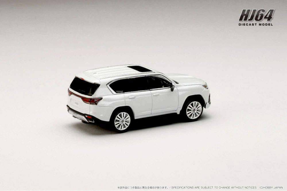 ホビージャパンの1/64ダイキャストシリーズHJ64から1/64 レクサス LX600 エグゼクティブの登場です。内装は落ち着いたブラックとなります。製品にはクリアケースと台座が付属しますのでコレクションに最適です。