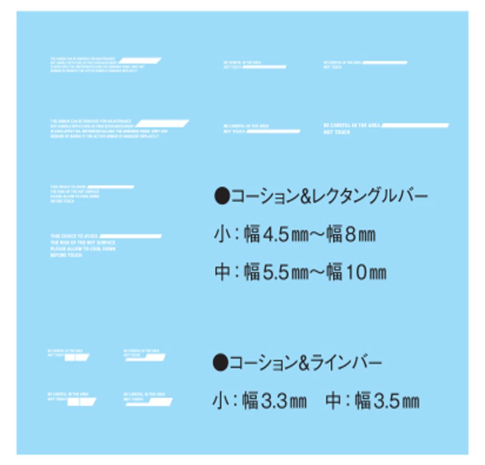 本商品はキャラクター系ロボットアイテムで多用される「ライン」と「マーキング」の新規デザインバージョン第4弾。エッジレイアウトをテーマに「パーツ端にも貼りやすいラインバーが斜めにデザインされた各種マーキング」を小中2サイズでセットアイテム化したもの。デザインは斜め上版と斜め下版を用意。より選択しやすいマーキングとして仕上げることができます。