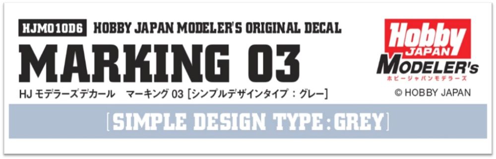 株式会社ホビージャパンのホビーブランドである「ホビージャパンモデラーズ」のオリジナル水転写デカール「HJモデラーズデカール」シリーズ。 「プロモデラーが求めるマーキング」をテーマに、高精度水転写デカール化していきます。