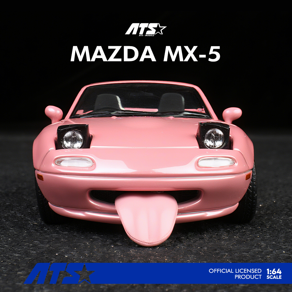 世界中で愛される初代MX-5(ロードスター)が、ATS MODELSより精密な1/64スケールで登場。最大の特徴は、付属の専用パーツで「舌出し(あかんべえ)」の愛くるしい表情を再現できるユニークなギミックです。手のひらサイズながら、実車の美しいラインと質感をダイキャスト合金で再現。刻印入りの専用台座とアクリルケースが付属し、コレクションとして、また車好きな方へのギフトとしても最適な、遊び心あふれる特別な一台です。