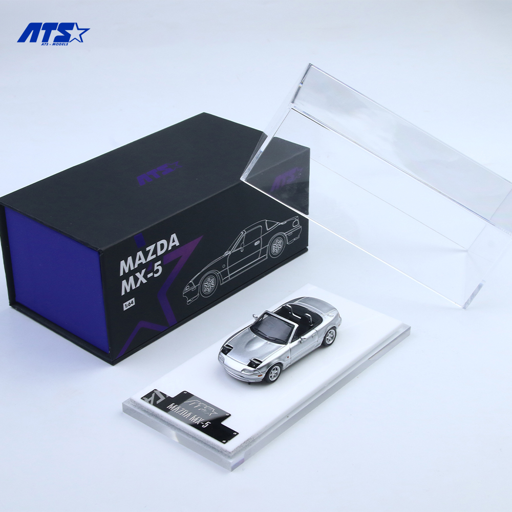 世界中で愛される初代MX-5(ロードスター)が、ATS MODELSより精密な1/64スケールで登場。最大の特徴は、付属の専用パーツで「舌出し(あかんべえ)」の愛くるしい表情を再現できるユニークなギミックです。手のひらサイズながら、実車の美しいラインと質感をダイキャスト合金で再現。刻印入りの専用台座とアクリルケースが付属し、コレクションとして、また車好きな方へのギフトとしても最適な、遊び心あふれる特別な一台です。