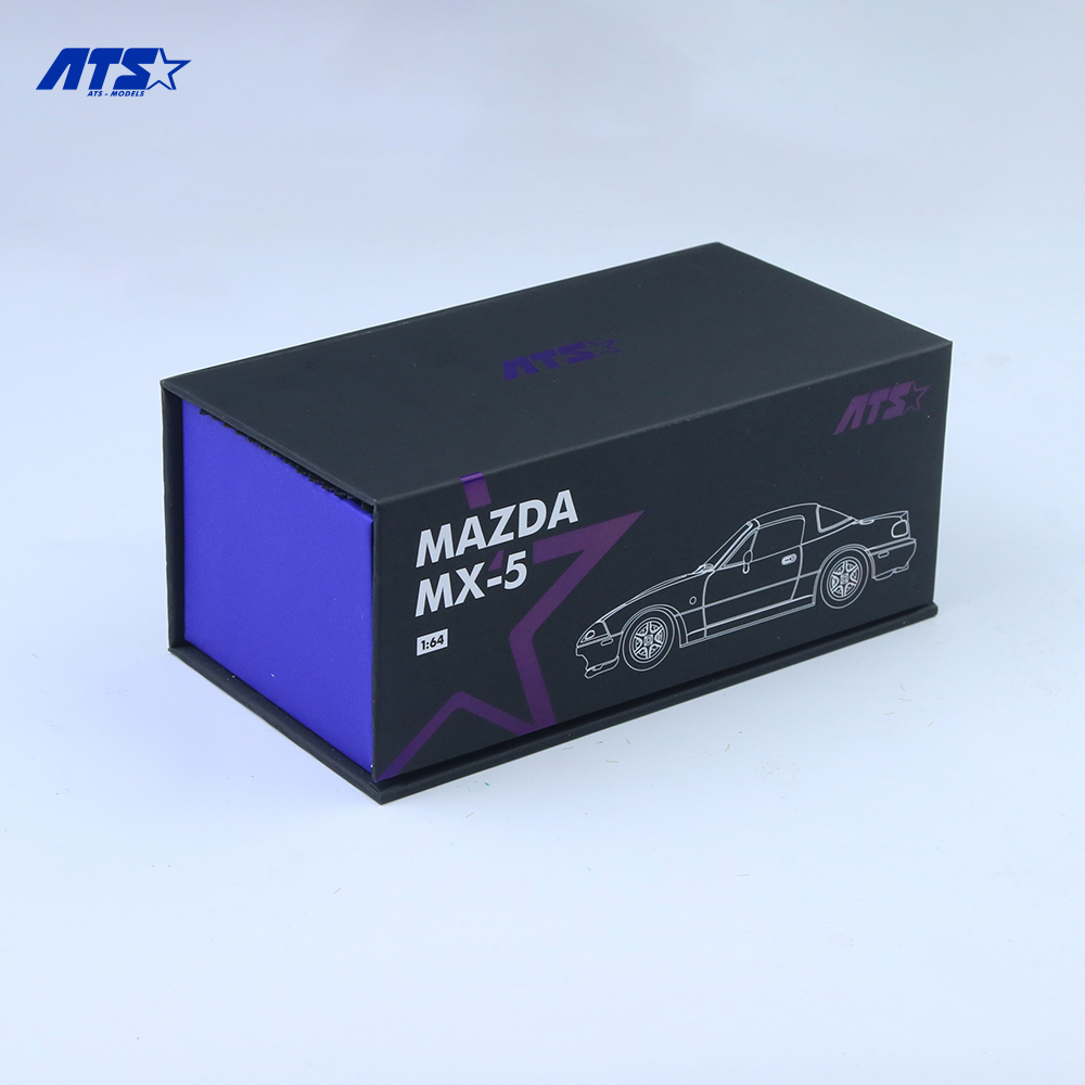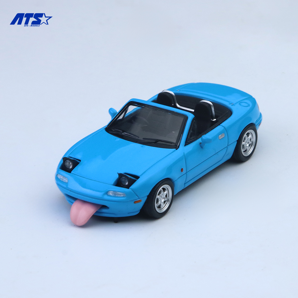 世界中で愛される初代MX-5(ロードスター)が、ATS MODELSより精密な1/64スケールで登場。最大の特徴は、付属の専用パーツで「舌出し(あかんべえ)」の愛くるしい表情を再現できるユニークなギミックです。手のひらサイズながら、実車の美しいラインと質感をダイキャスト合金で再現。刻印入りの専用台座とアクリルケースが付属し、コレクションとして、また車好きな方へのギフトとしても最適な、遊び心あふれる特別な一台です。
