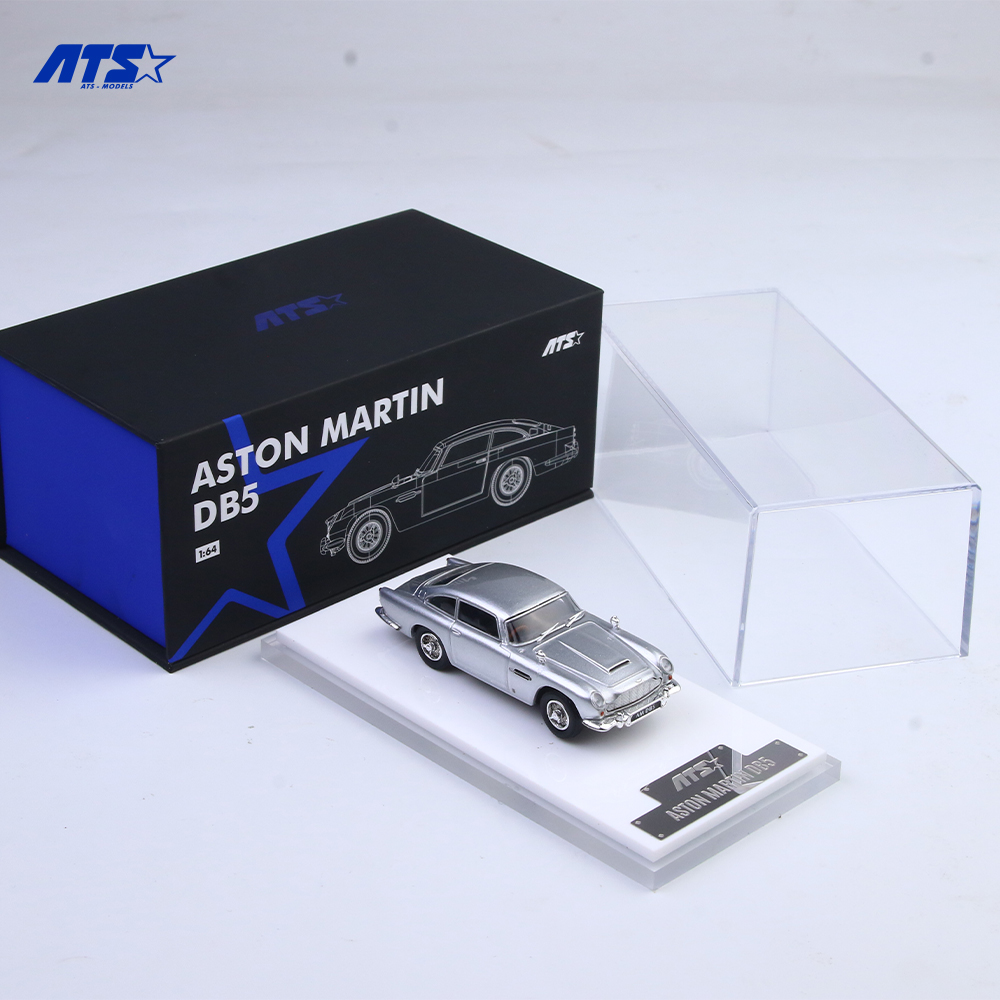 英国の名車、アストンマーティン DB5 の気品あふれるフォルムを 1/64 スケールに凝縮したプレミアムモデルです。「ATS-MODELS」の精密なダイキャスト製ボディはもちろん、贅沢なプレゼンテーションにも最大の特長があります。重厚なギフトボックスに収められたパッケージは、高級時計のような風格を漂わせ、コレクションとしての価値をさらに高めます。クリアケースと、モデル名が刻印されたメタルプレート付きの専用台座も付属し、あらゆる角度からその造形美を堪能できます。まさに「大人のためのディスプレイモデル」と呼ぶにふさわしい逸品です。