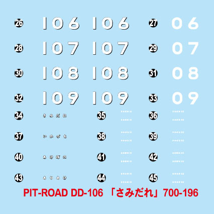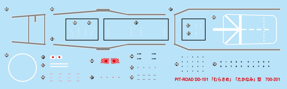 ・106~109番艦「さみだれ」「いかづち」「あけぼの」「ありあけ」の艦番号、艦名と、現行のヘリ着艦標識や歩行帯を含む新規作成のデカール付き