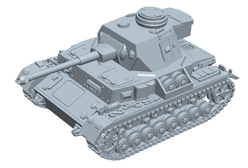 ・本編中盤の主役戦車「IV号戦車D型改(F2型仕様)」がプラモデルキットで登場です。長砲身になった車体は、手のひらサイズの小ささでも、前部増加装甲やエンジンルーバーなどD型との違いがしっかりと再現されています。
