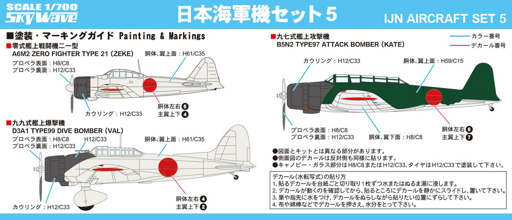 ・零式艦上戦闘機二一型、九九式艦上爆撃機、九七式艦上攻撃機、各5機入り