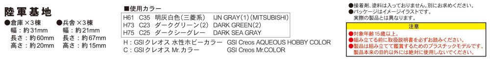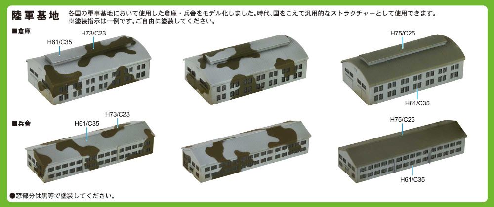 各国の軍隊等が基地において使用した倉庫.兵舎をモデル化。