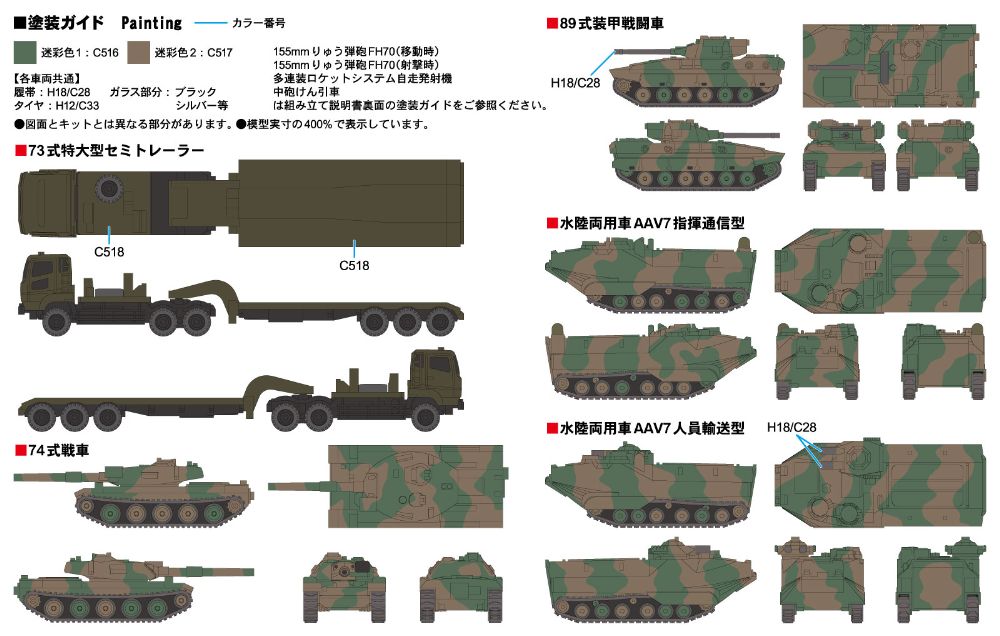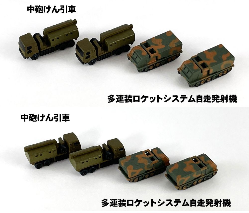 陸上自衛隊車両セットの第3弾は、新設された水陸機動団の水陸両用車や74式戦車、りゅう弾砲、多連装ロケットシステム等の多彩な装備をセットしました。