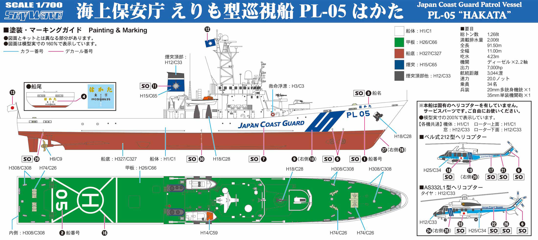 J114 1/700 海上保安庁 えりも型巡視船 PL-05 はかた