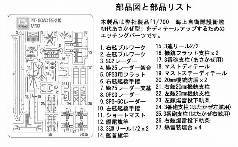 PE210 1/700 海上自衛隊 初代あさかぜ型用 エッチングパーツ