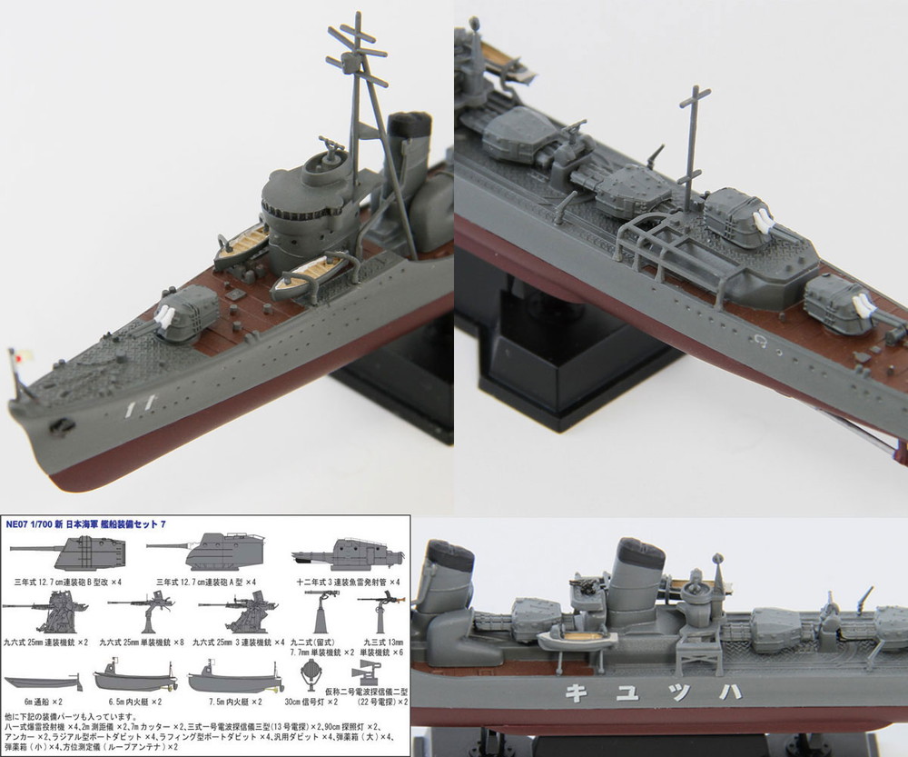 ・本製品に付属するNE07「1/700 新 WWII 日本海軍 艦船装備セット 7」は、吹雪型駆逐艦(特I~III型)にターゲットを絞った装備セットです。初期タイプの12.7cm連装砲2種や6.5m内火艇などを新規パーツでご用意しました。