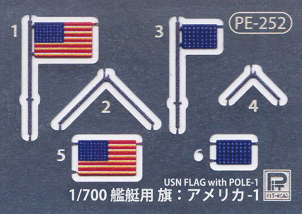 アメリカ海軍 旗、旗竿カラーエッチングパーツ:5枚入り