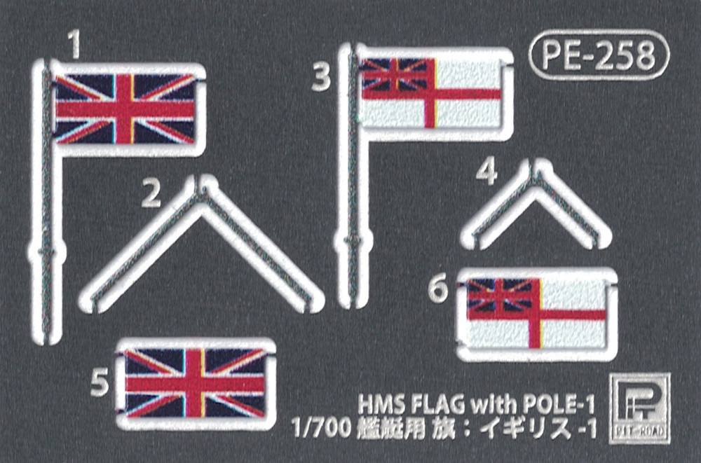 ・イギリス海軍 旗、旗竿カラーエッチングパーツ:4枚入り