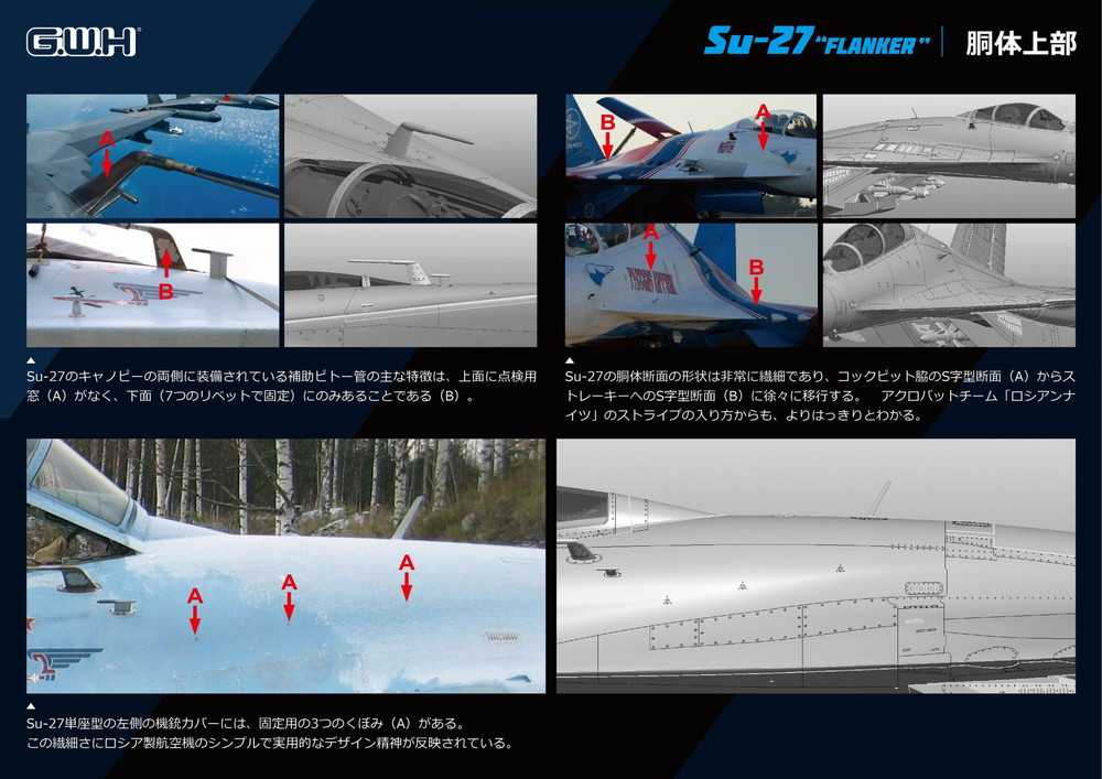 グレートウォールホビーより、多くの派生型を持つフランカーファミリー最初の量産型、Su-27フランカーBが発売されます。細部に至るリサーチで各部のディテールを徹底的に再現した、好評発売中のSu-27UBフランカーCが複座型であるのに対し、こちらは単座型フランカーBになります。