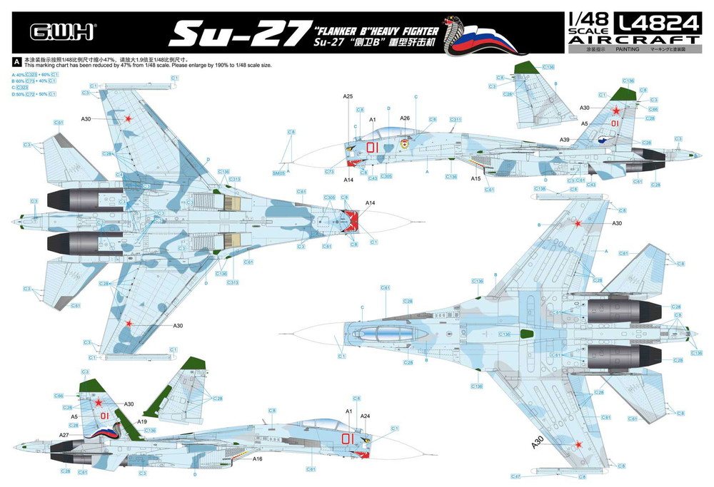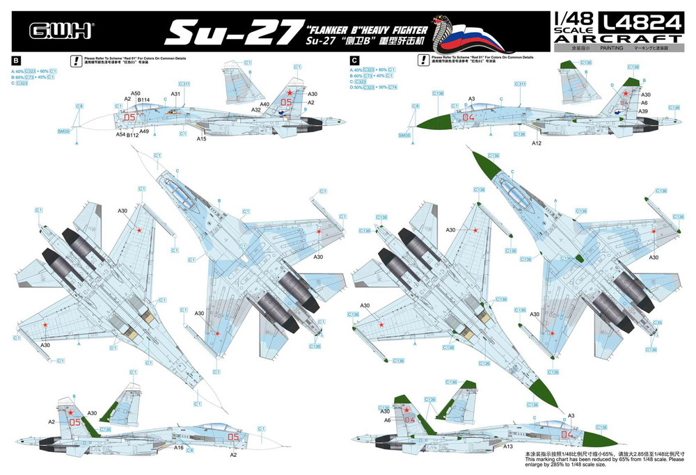 ・ロシア海軍航空隊×1、ロシア空軍×1、ソビエト空軍×1、ウクライナ空軍×1、中国空軍×2 計6種のデカールマーキング入り