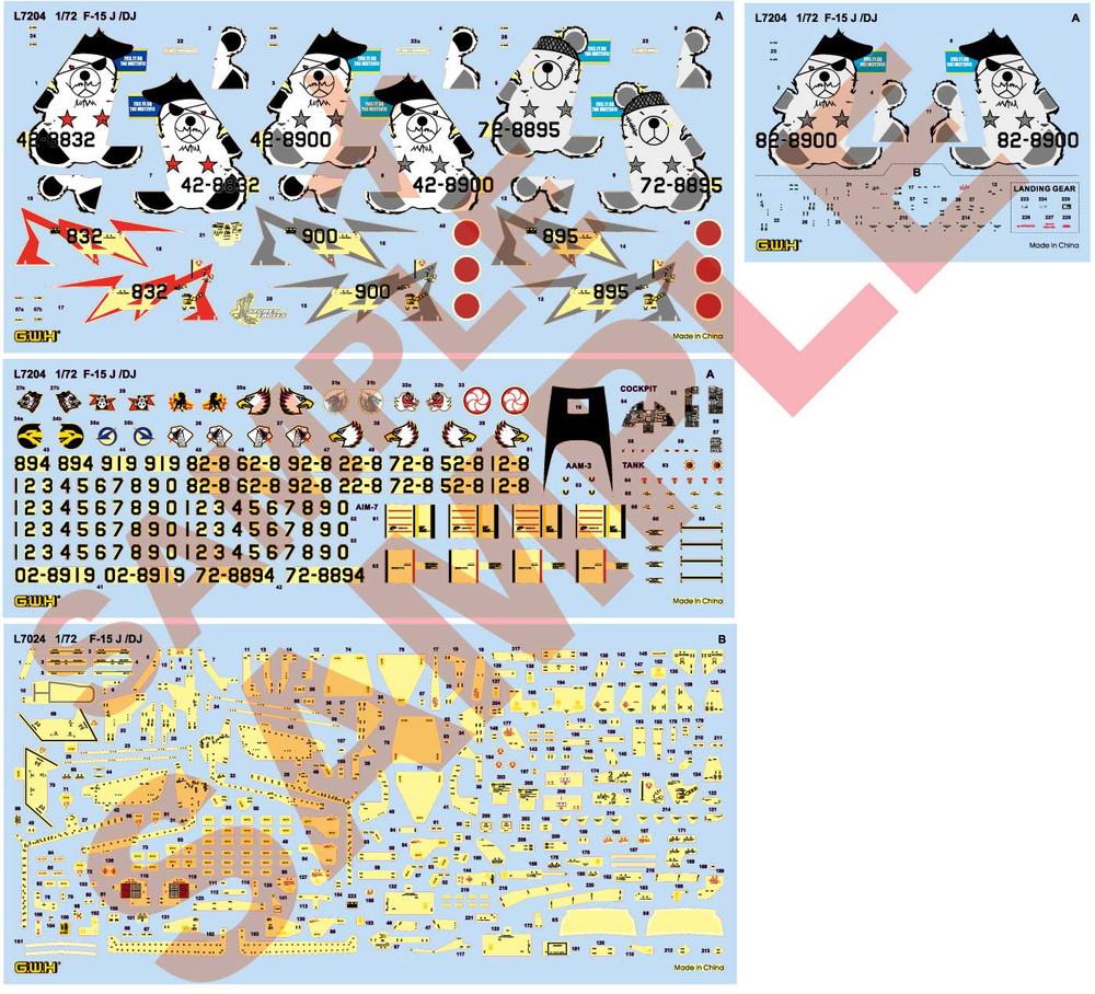 ・航空総隊戦技競技会での特別塗装の中でも人気が高い、2013年度の第203飛行隊海賊風ヒグマ(832、895、900号機)のマーキングの他、通常塗装の204、203飛行隊など所属全部隊(2009-15年頃)のデカール付属