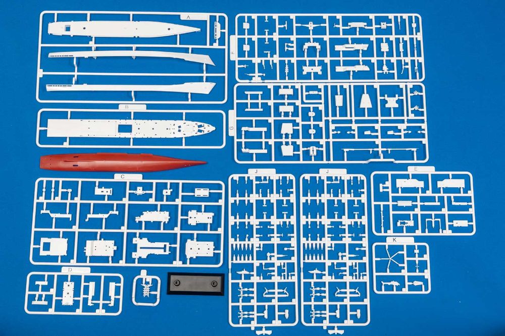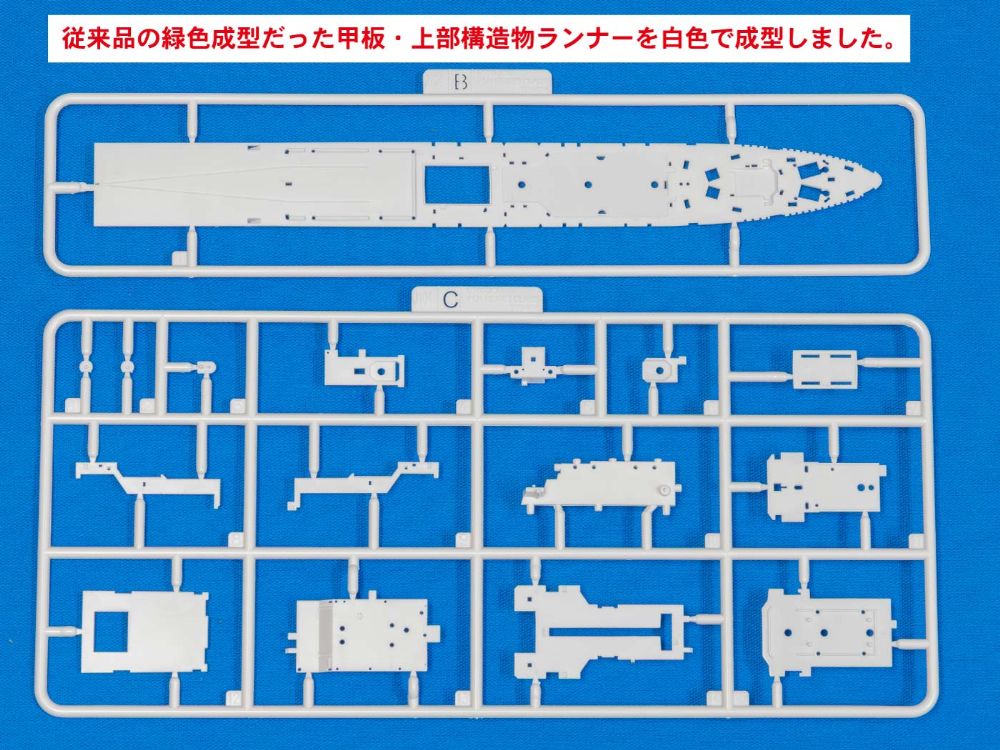 ・旗、旗竿のカラーエッチングパーツ、艦名プレート(10mm×50mm)付属。旗は手で曲げることによって風になびく様を再現できます。 - サイズ