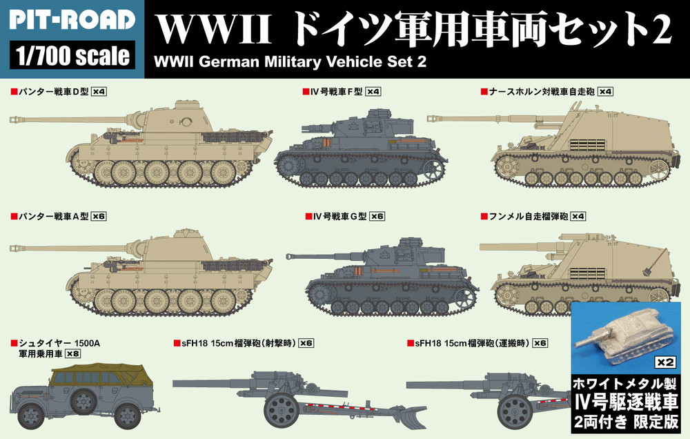 WWII ドイツ軍用車両セット2 ホワイトメタル製 IV号駆逐戦車 2両付き 1/700スケールプラモデル