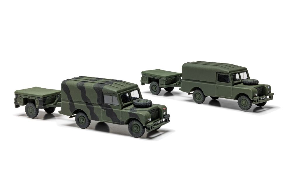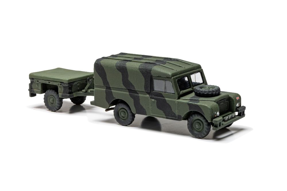 高い走破性と信頼性でイギリス軍を支えたランドローバーの多目的車両とトレーラーのセットです。