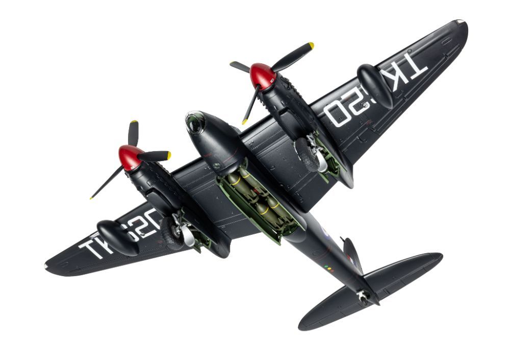 2021年に新金型で登場して以降大好評のエアフィックス社モスキートに新パーツを21点追加し、最後期型を再現した新キットが仲間入りします。与圧されたキャビンが特徴のB.XVI型の他、マーリン113/114エンジンを搭載した最後の爆撃機型B.35、そして戦後標的機を曳航するために改修され、1963年まで運用されたTT.35型を選択して作成できます。戦中から戦後にかけてRAFで活躍した以下3機を再現できるカルトグラフ社製デカールが付属します。