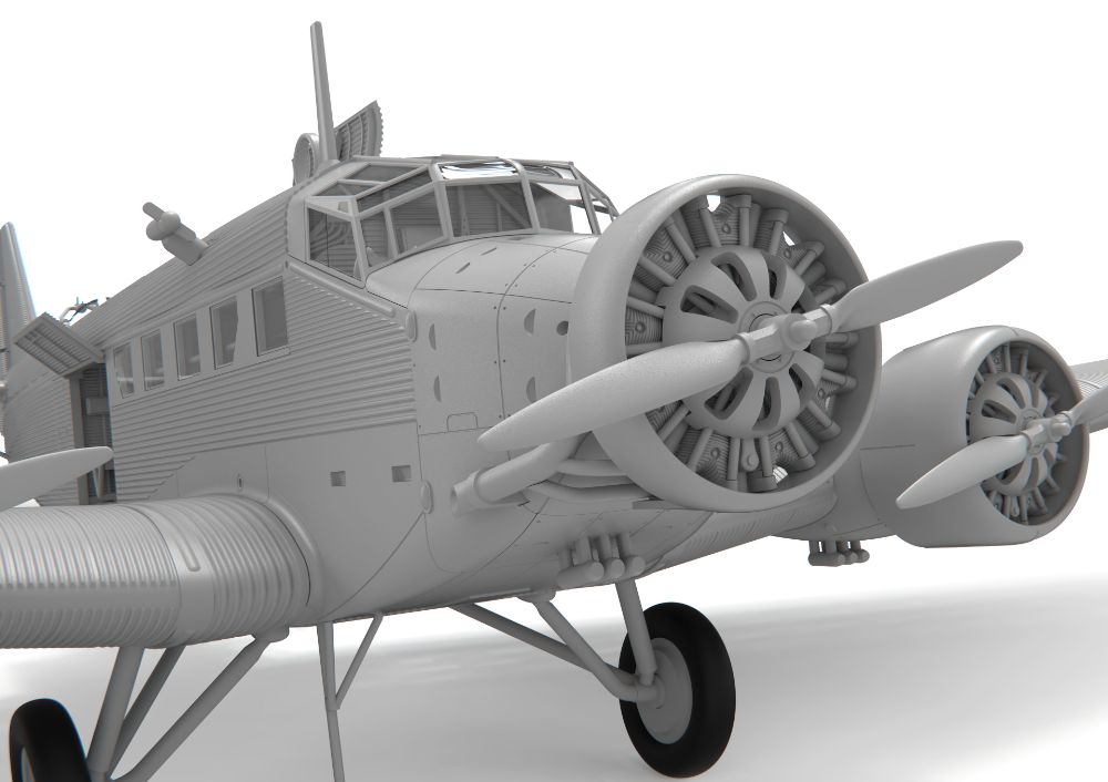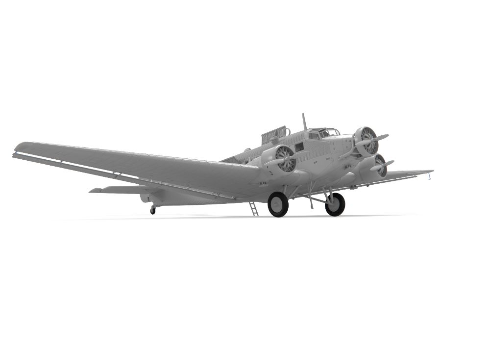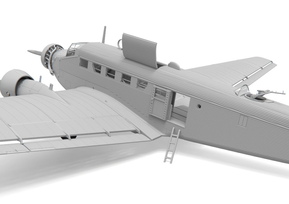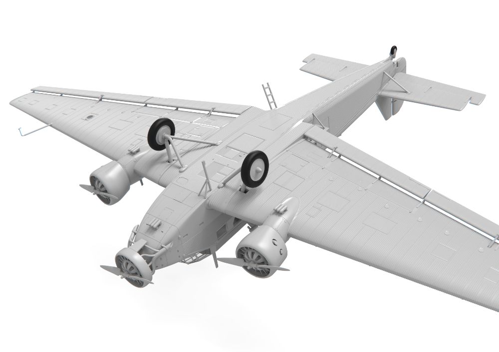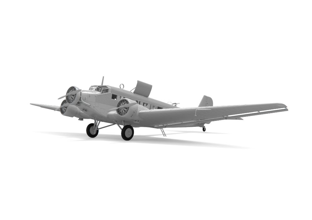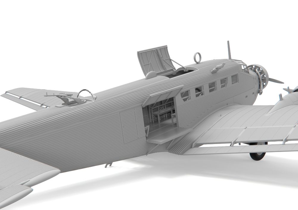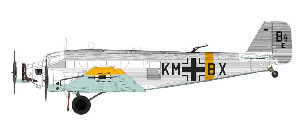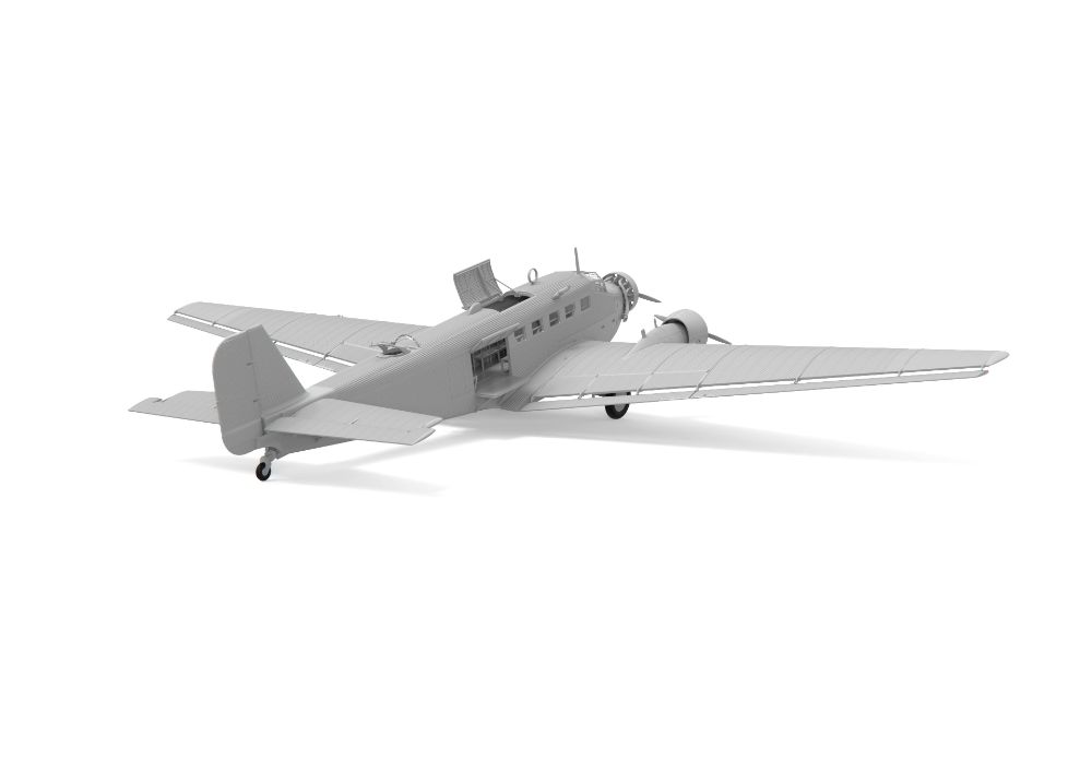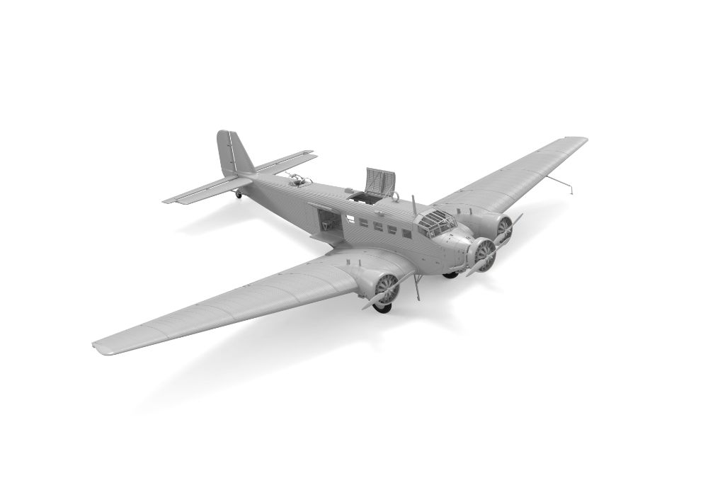 特徴的な外見が人気なドイツの3発機が完全新金型で商品化。当初貨物機/旅客機として1930年代に開発された本機は高い耐久性などから第二次大戦を通して輸送機、爆撃機として運用されました。波型外板を使用した機体表面を正確に表現。各部のドアやハッチは開閉状態を選択可能。搭乗者用のベンチシートなどの内装も再現されています。