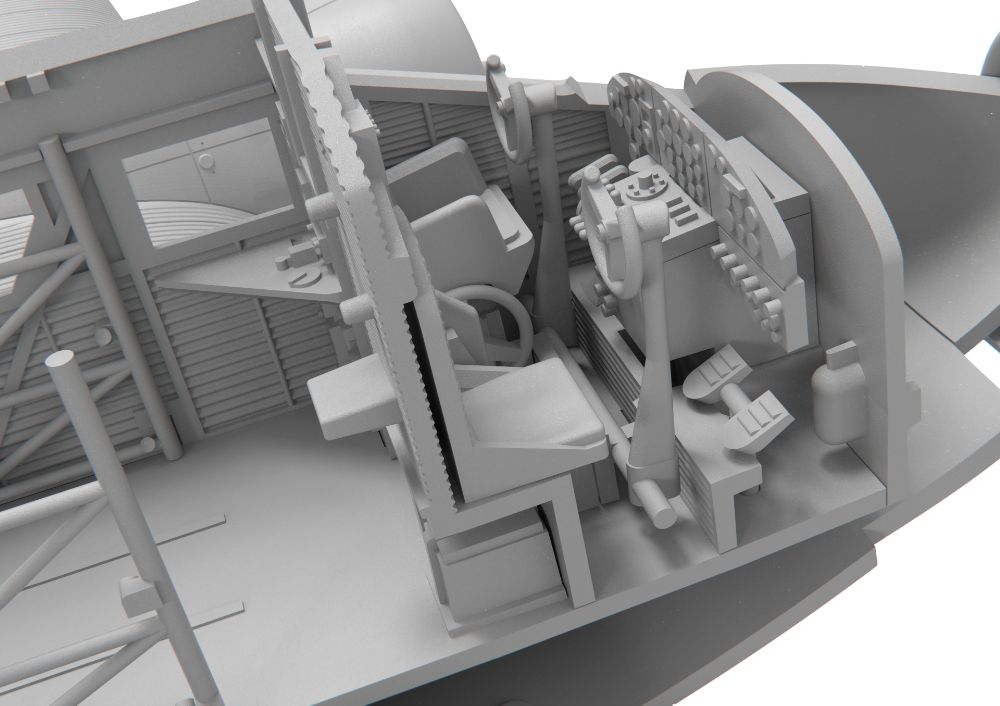 燃料缶および車止めが付属。機銃およびスパッツの有無を選択可能。キャノピーは全周にわたる窓枠をくっきりと造形するためスライド金成形型を採用しています。