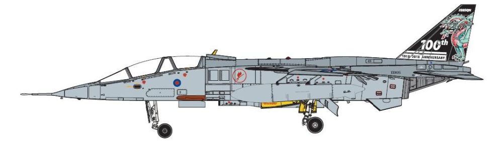 2025年に登場した単座型に続き、コックピットを新規パーツで再現した複座練習機が登場します。内装はT.2型とT.4型の差異を再現した2種を選択可能です。マーキングデカールは英国空軍100周年の記念塗装が施された機番XX835をはじめとした3種が付属します。