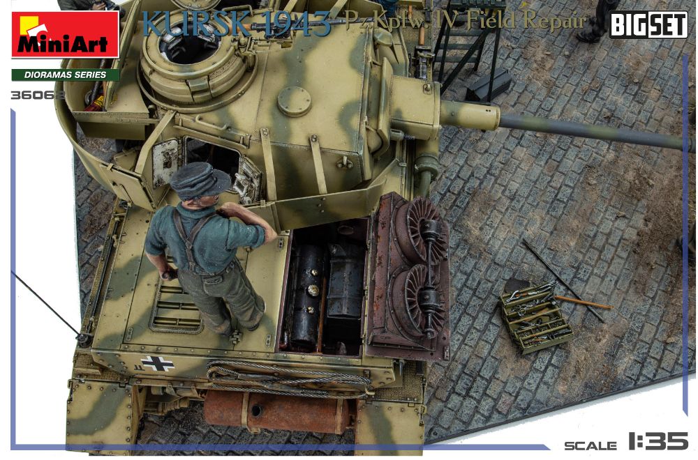 1943年のクルスク会戦におけるⅣ号戦車の野外修理シーンを再現したキットです。