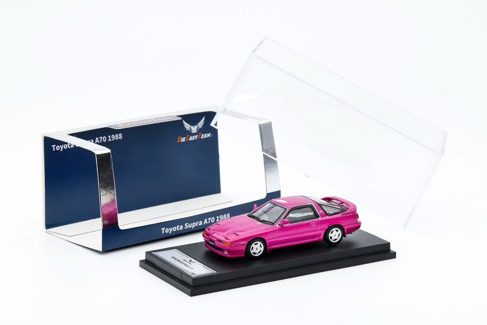 「ダイキャストチーム」より、Toyota Supra A70 のご紹介です。リトラクタブルヘッドライトは可動式で、製品には透明ケースと台座が付属します。プレイアビリティとコレクション性を兼ね備えたアイテムです。
