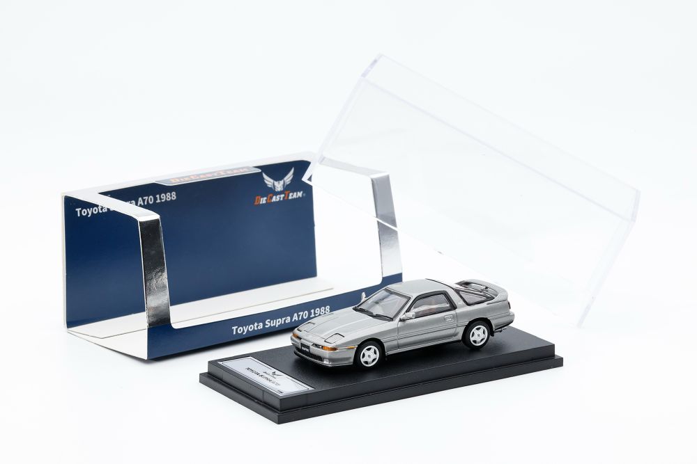 「ダイキャストチーム」より、Toyota Supra A70 のご紹介です。リトラクタブルヘッドライトは可動式で、製品には透明ケースと台座が付属します。プレイアビリティとコレクション性を兼ね備えたアイテムです。