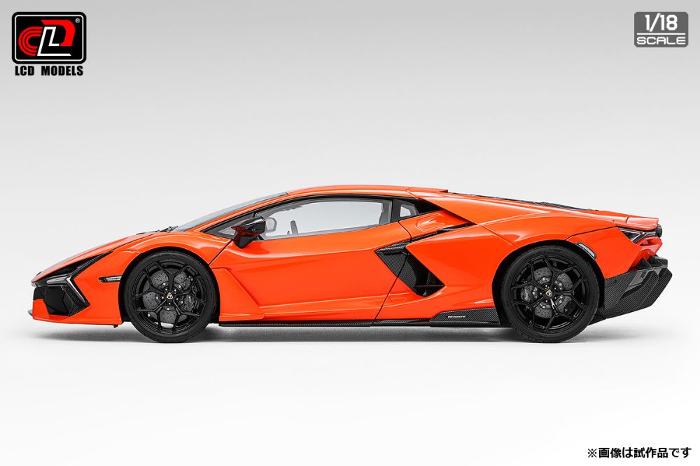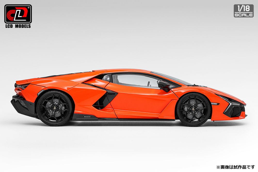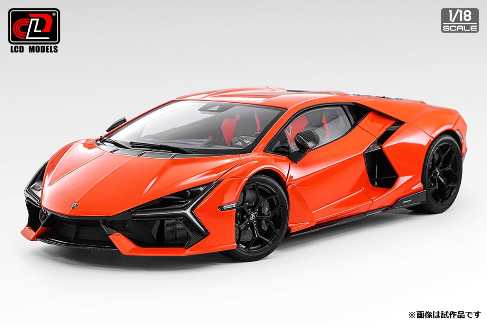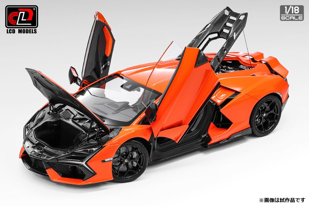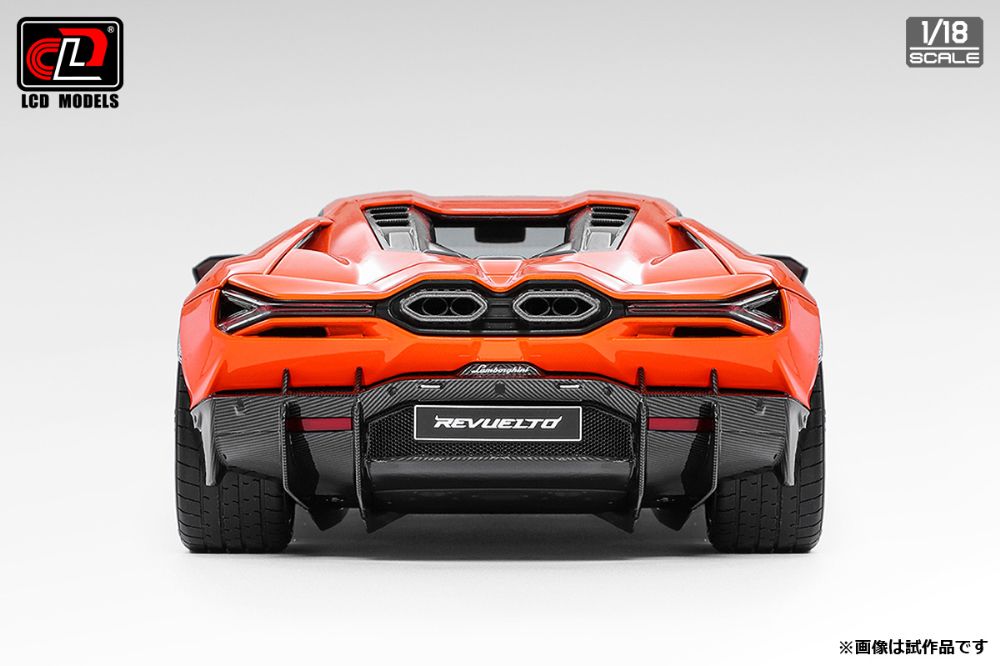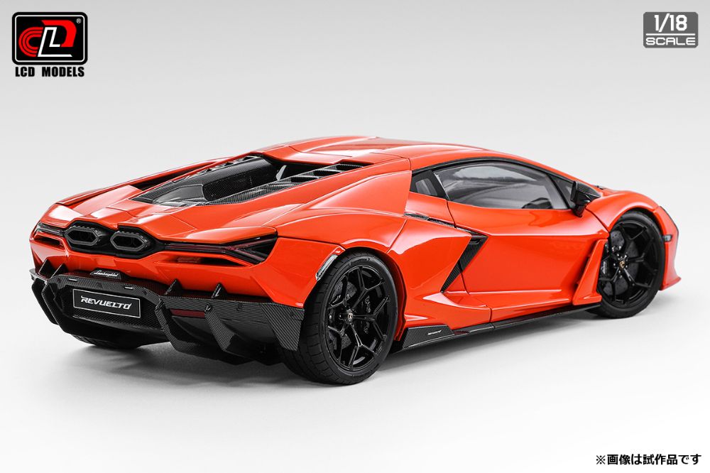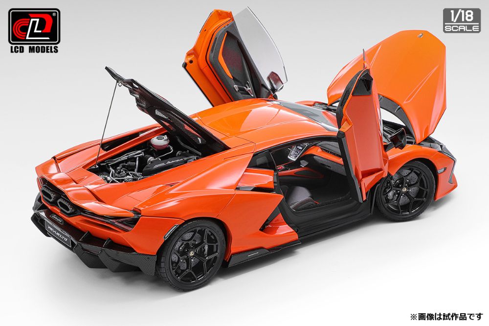 Lamborghiniの創業60周年を記念して発表されたRevueltoは、同社のフラッグシップモデル「アヴェンタドール」の後継車として2023年に発売されたHPEVハイブリッドスーパースポーツカーです。そのメカニカルな魅力を1/18スケールに詰め込んだ超精密モデルカーです。