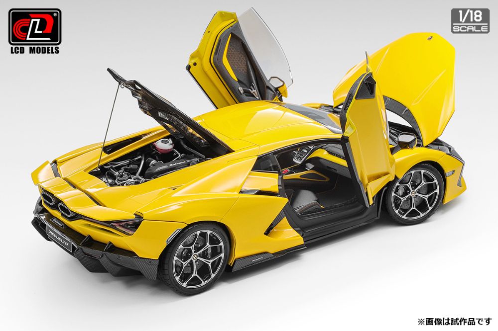 Lamborghiniの創業60周年を記念して発表されたRevueltoは、同社のフラッグシップモデル「アヴェンタドール」の後継車として2023年に発売されたHPEVハイブリッドスーパースポーツカーです。そのメカニカルな魅力を1/18スケールに詰め込んだ超精密モデルカーです。