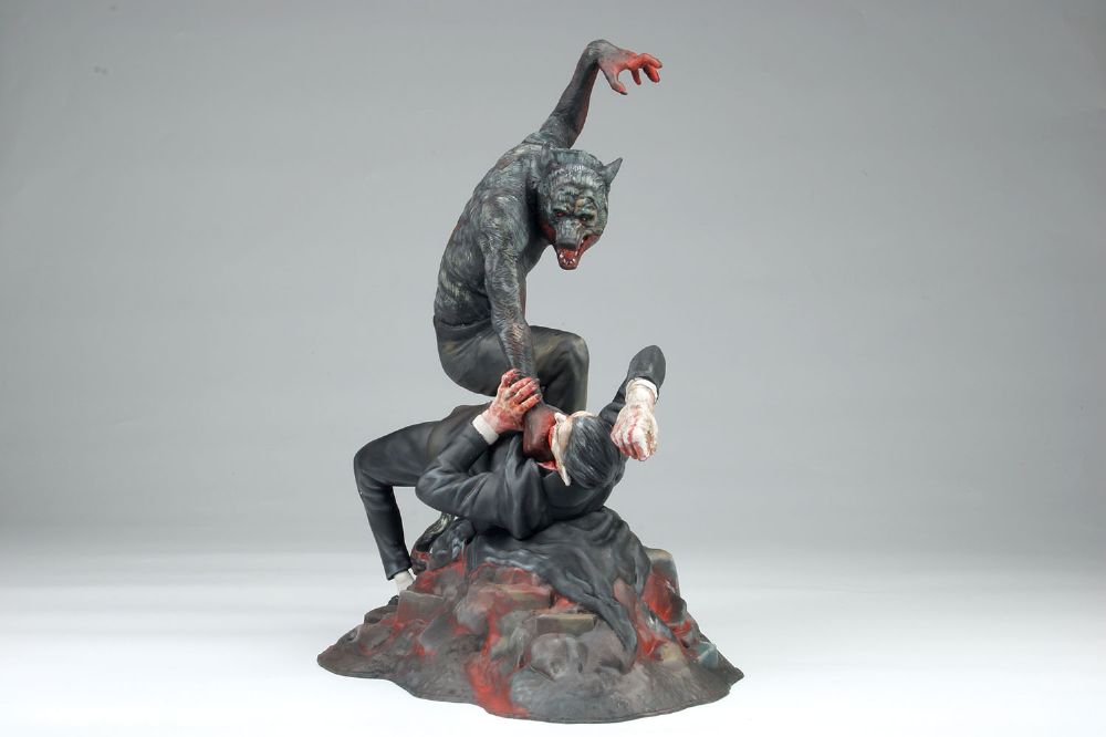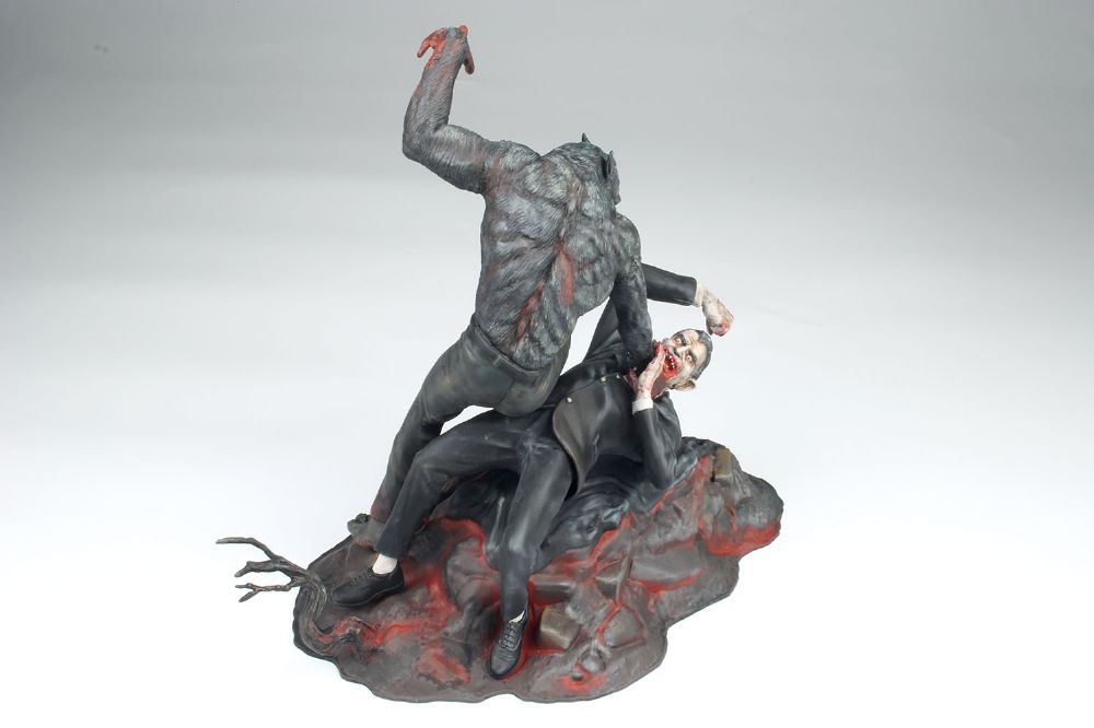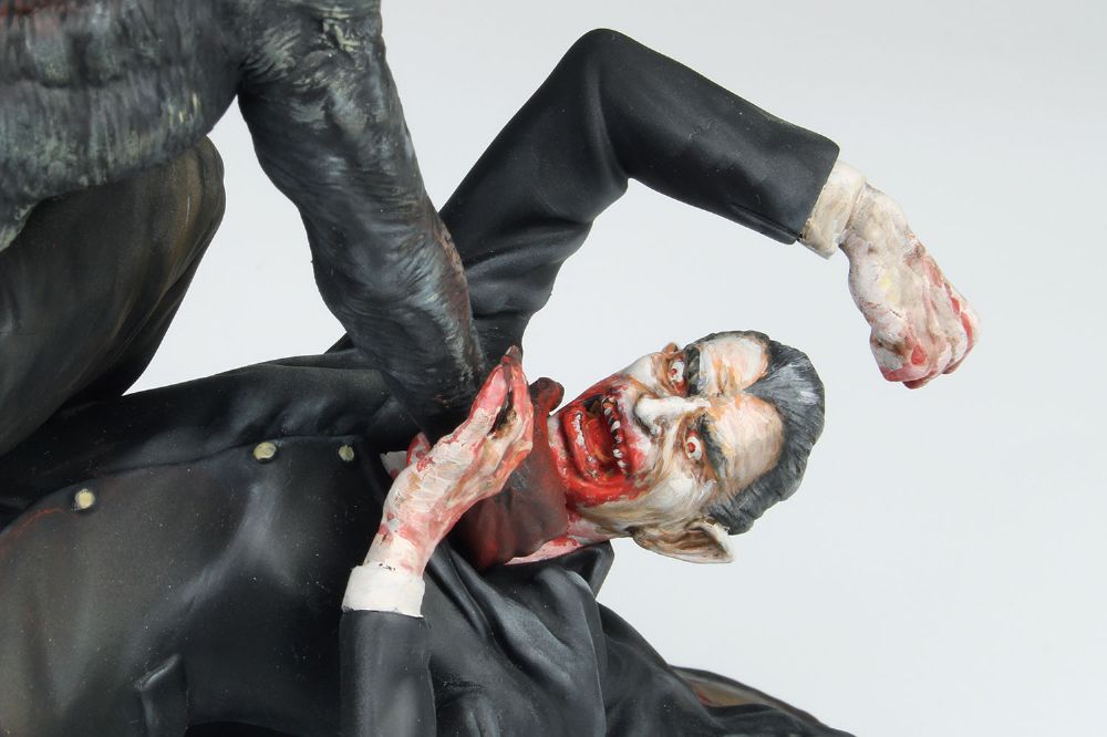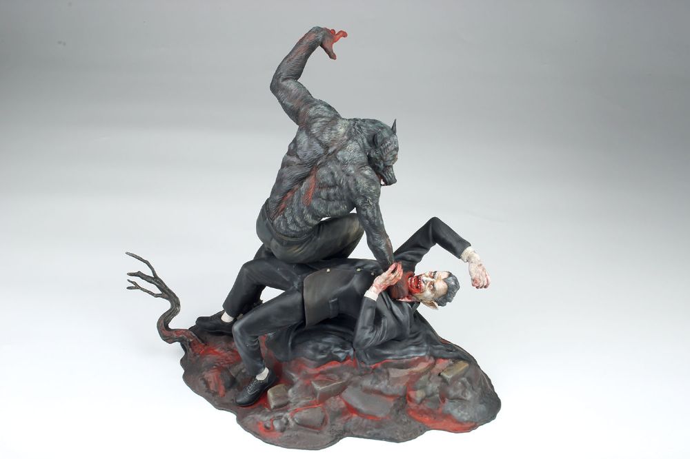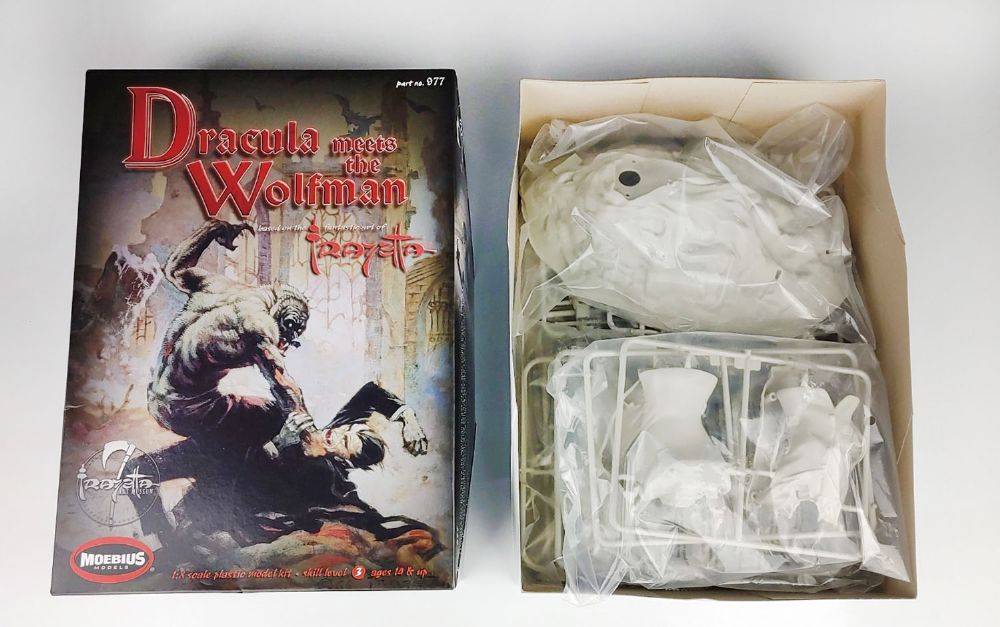 アメリカで人気のアーティスト、フランク・フラゼッタが1966年2月号のCreepy#7の表紙に描いたイラストをベースに1/8スケールで再現したドラキュラvs狼男のフィギュア組み立てキットです。
