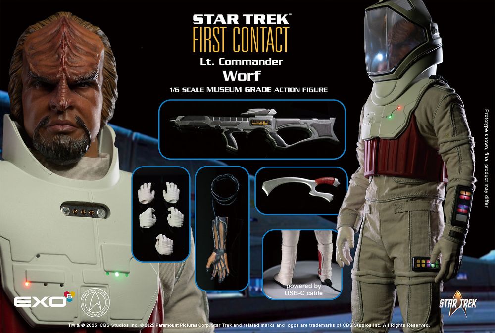 スター・トレックのキャラクターを1/6のビッグスケールで再現してファンの注目を集めたアメリカのメーカー、EXO-6(エックス・オー・シックス)。続々とリアルに再現された人気キャラクターをラインアップしていますが、今回はスター・トレック劇場版第8作、スター・トレック:ファーストコンタクトに登場したウォーフ中佐をモデル化しています。