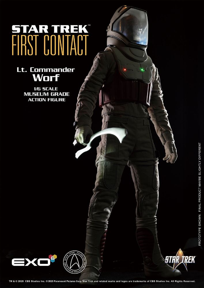 スター・トレック:ファーストコンタクトは、ゼフラム・コクレーンによる人類初のワープ飛行の日を中心に描いた作品です。その中でもファンの間で語り継がれているウォーフが無重力でボーグ・ドローンの手を切断しその接続ケーブルで破壊されたEVAスーツを封印し宇宙空間を生き延びた象徴的なシーンでのウォーフをモデル化しています。