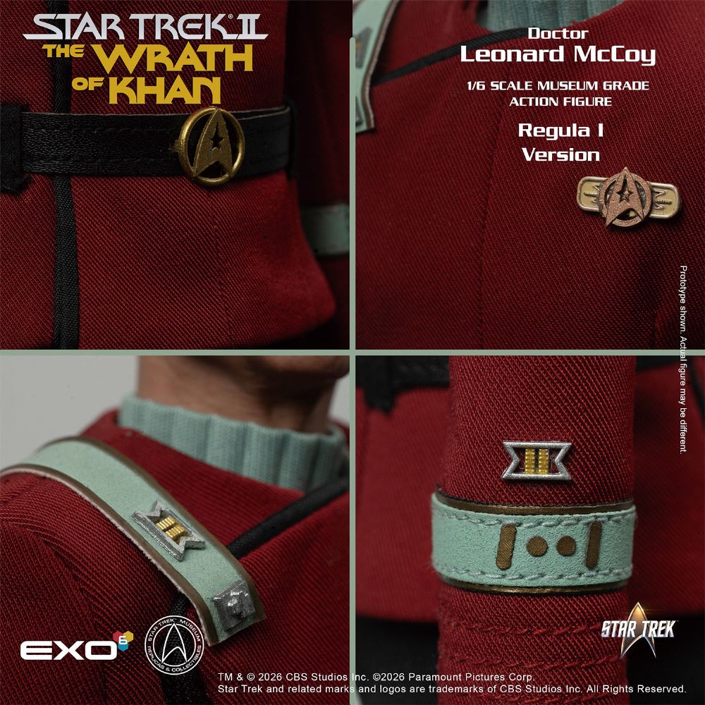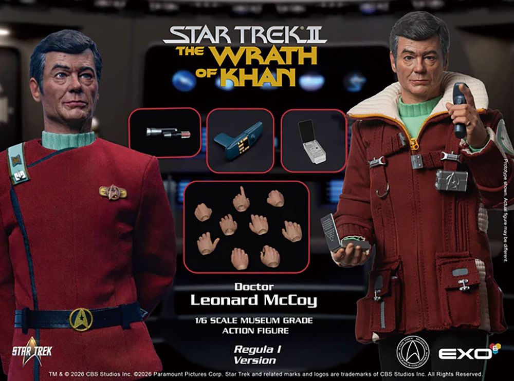 スター・トレックのキャラクターを1/6のビッグスケールで再現してファンの注目を集めたアメリカの新興メーカー、EXO-6(エックス・オー・シックス)。続々とリアルに再現された人気キャラクターをラインアップしていますが、今回は1982年に公開された劇場映画、スター・トレックIIカーンの逆襲で極めて重要な役割を演じた主任医療士官、ドクター マッコイが登場です。