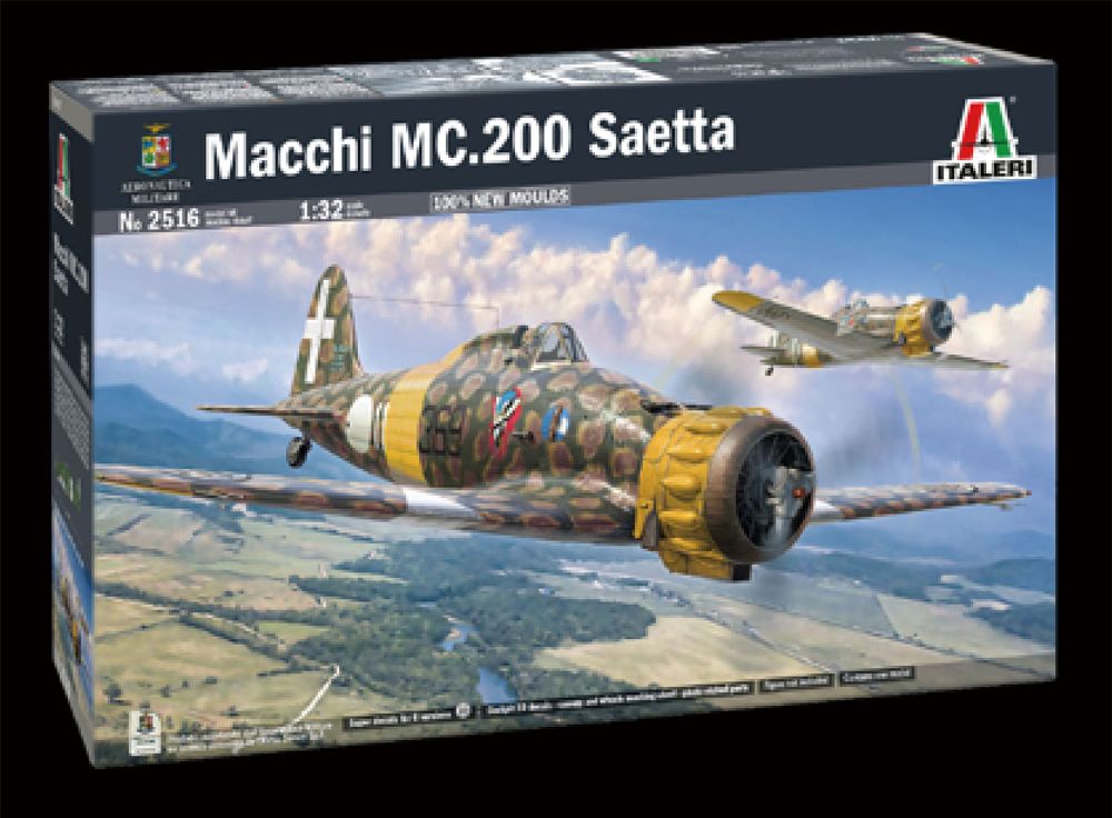 第二次世界大戦初期のイタリア空軍の傑作戦闘機、マッキMC.200サエッタを再現したプラスチックモデル組み立てキットです。スケールは1/32。イタリアの名機をイタリアの模型メーカー、イタレリが傑作機の姿を余すところなく再現します。機首に搭載された星型空冷14気筒エンジンは冷却フィンが刻まれたシリンダーのディテールに至るまで繊細に表現。メカニカルな仕上がりです。