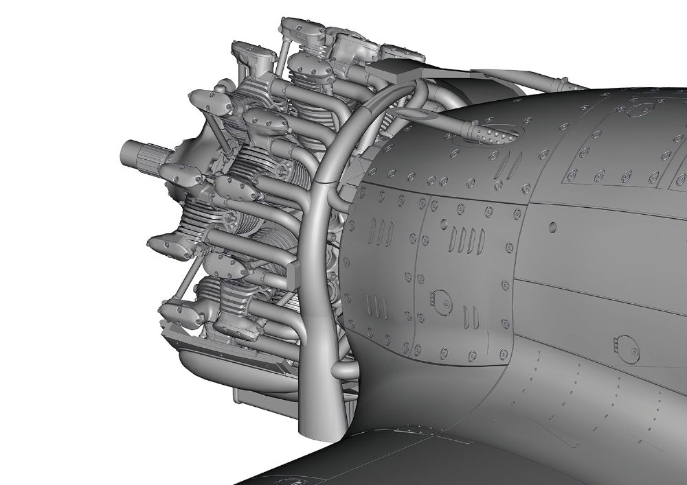 エンジンを包むバルジがデザインされたカウリングはモデルでもポイントの一つ。正確な形状の再現かrカストルディギ師のデザインの意図も理解できることでしょう。