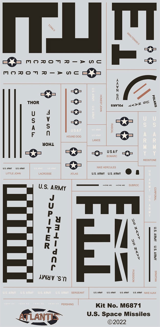 アメリカ軍が大戦後に配備運用したミサイル類を36種、セレクトしてモデル化しています。