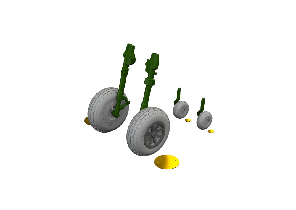 ・エッチングパーツ、塗装マスクシール、着陸装置格納庫塗装マスク、3Dプリンター製排気管、ホイール (2種 x 各1)と