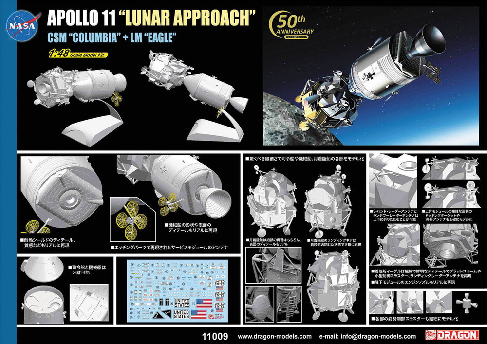 ドラゴン 1/48 アポロ11号 司令船コロンビア/機械船&月着陸船イーグル 月面への挑戦 プラモデル DR11009