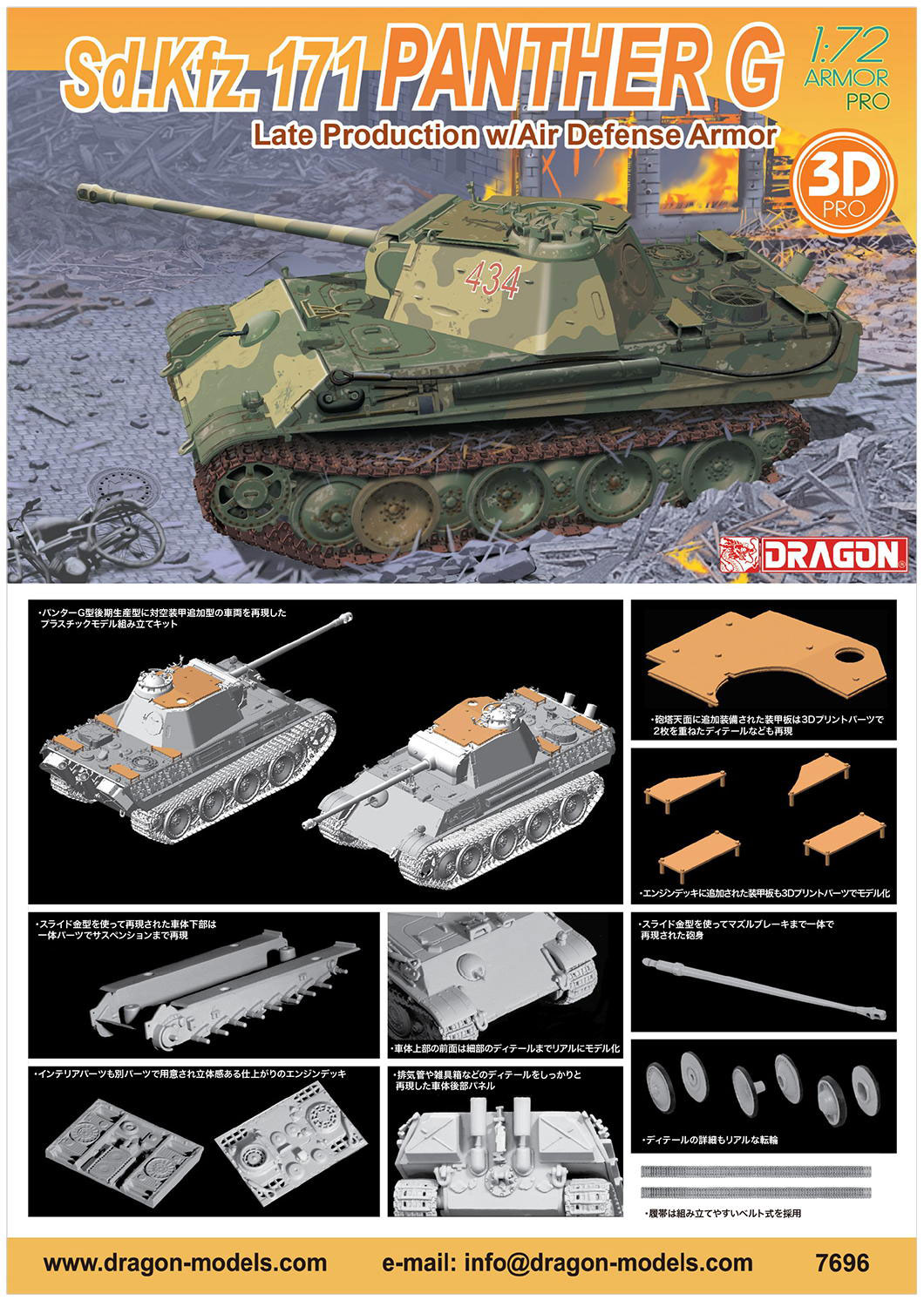 ドラゴン 1/72 WW.II ドイツ軍 パンターG 後期生産型 3Dプリントパーツ対空装甲付き プラモデル DR7696