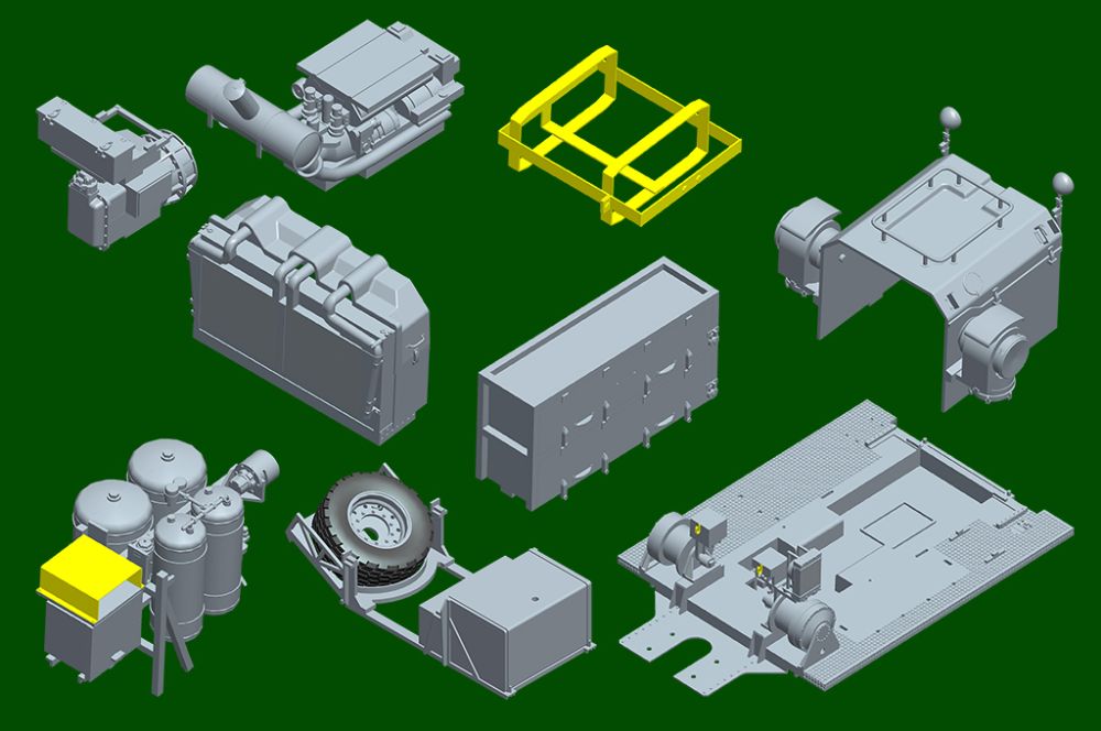 1970年代にドイツ連邦(西ドイツ)陸軍で採用されていたファウン SLT 50 エレファント戦車運搬車 w/SaAnh 52t セミトレーラーが登場します。製品はスライド金型で成形されたキャビン、装輪車両特有の足回り(トランスミッション・サスペンション等、52tセミトレーラーを精密なモールドで再現。タイヤは実感あるトレッドパターンが再現されたゴム系樹脂製です。エッチングパーツとウィンドウパーツ用マスキングシール、デカールが付属しています。