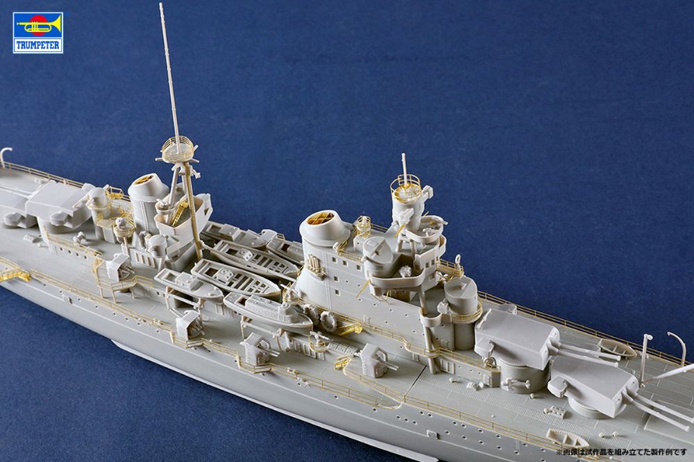 イタリア海軍ザラ級重巡洋艦の2番艦、ポーラが1/350スケールで登場します。製品はスライド金型で成形された船体(フルハル)や各種上部構造物、主兵装である20.3cm連装砲塔と各高角砲や機関砲を精密なモールドで再現しています。基本エッチングパーツとデカールが付属しています。本製品はフルハルモデルです。